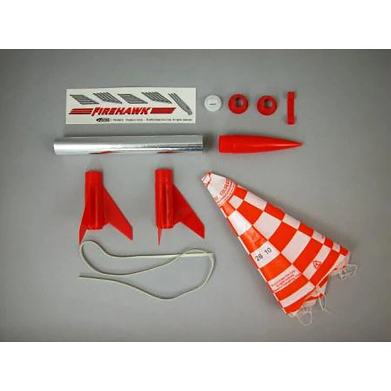 This rocket is one of our beginner level kits that can be ready to fly in about an hour. The plastic engine mount and easy to install fins are bright red and easily attach to the pre-colored silver body tube for quick assembly in less than 30 minutes. To complete the Firehawk, we’ve also included a colorful, self-stick decal set that enhances the looks of this mini missile. After a screaming, high altitude flight, the rocket returns gently on a colorful 12 inch parachute. This rocket is a terrific model rocket and is ideal for scout, club or school activities.