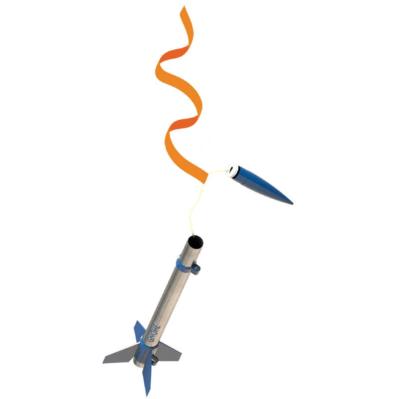 Standing just a little over 10 inches (26cm) tall with super shiny chrome and sapphire blue colors, the Gnome is one great looking, mini-engine powered cloud chaser that can reach altitudes of well over 800 feet (244m). Recovery is safe and reliable with its fluorescent colored streamer for easy tracking after a super fast flight!